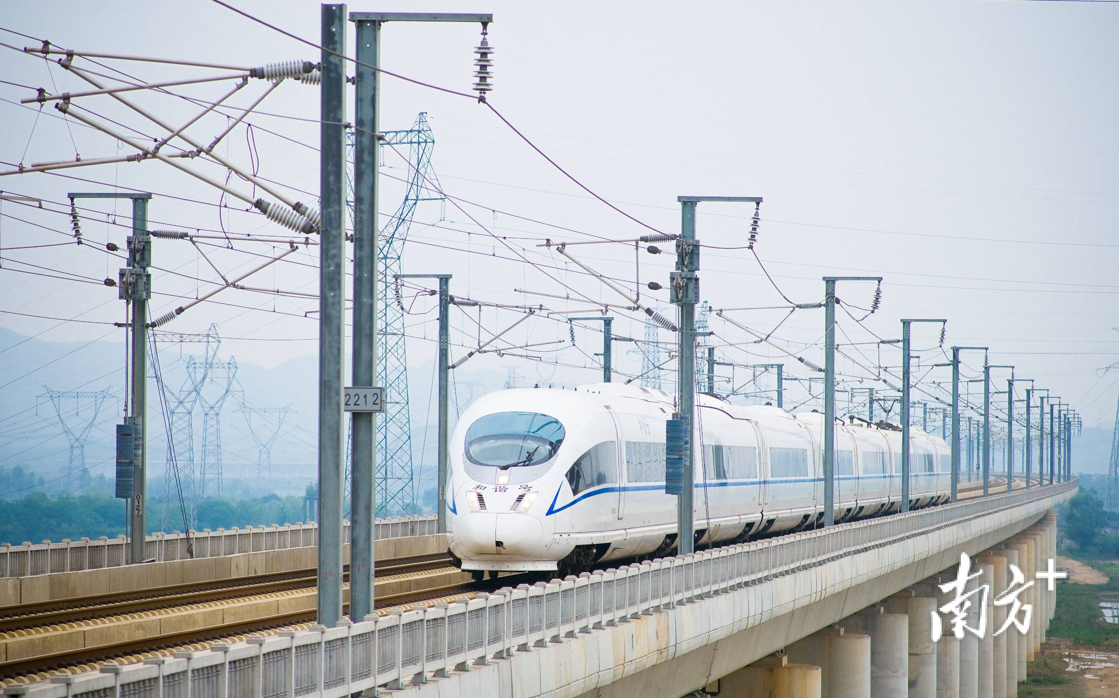 报告提出,构建现代化综合立体交通网,开工建设广州新机场、广清永高铁等项目。图为京广高铁清远段。