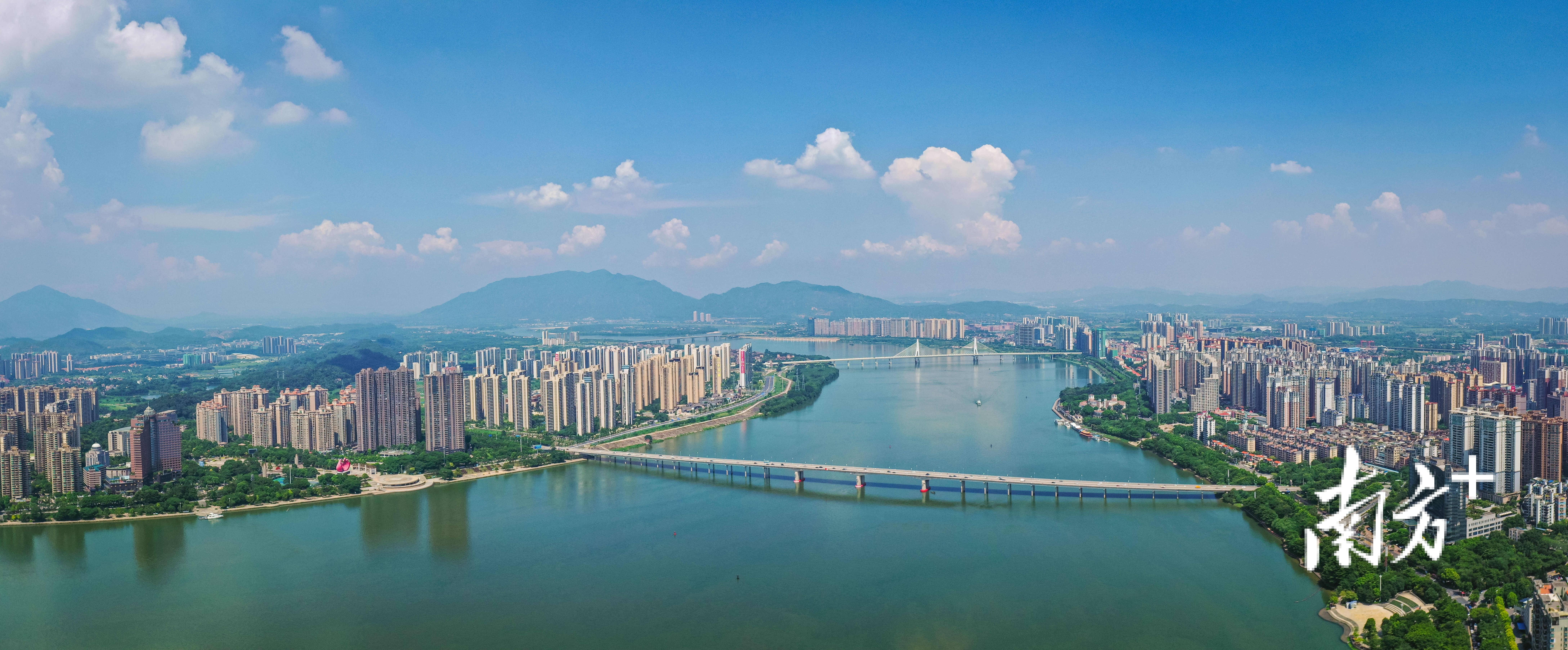 报告提出要加快广清高质量一体化,打造广清共同富裕典型区,探索广州北部与清远南部板块同城化合作。图为清远市区城市风光。